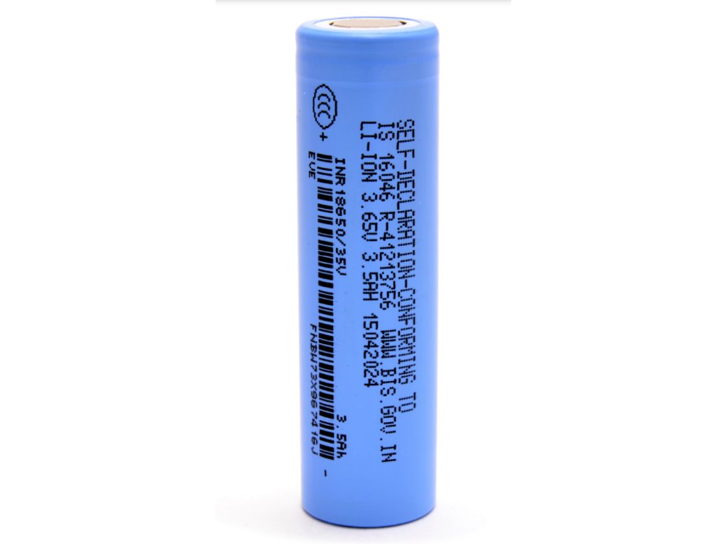 EVE INR18650/35V je vysokokapacitní lithium-iontový článek ve standardním formátu 18650, optimalizovaný pro aplikace s důrazem na maximální kapacitu a energetickou hustotu. Nabízí kapacitu 3500 mAh při maximálním kontinuálním vybíjecím proudu 10 A, což jej předurčuje pro zařízení s nízkým až středním odběrem.
